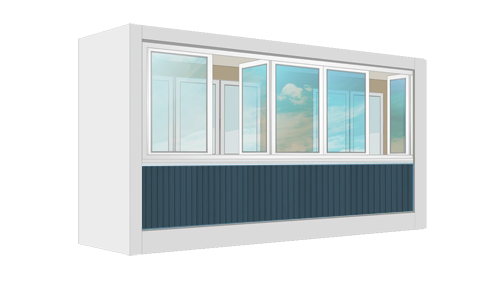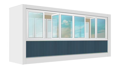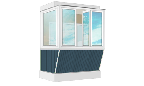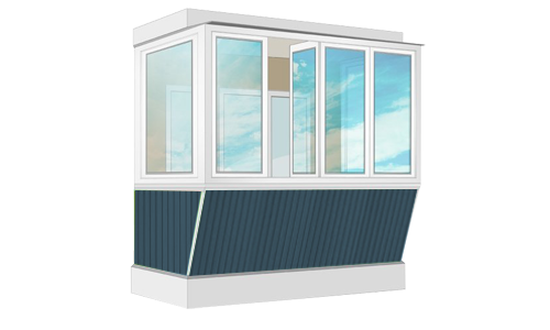 Остекление П-образного балкона размером 0,75х2,3х0,75м высота 1,4м.